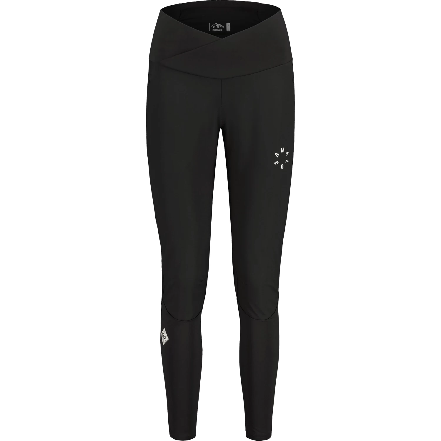 Twee zijzakken met rits en een zakje voor je smartphone, sterren over de onderkant, ronde Maloja-letters boven de linkerzak, Glide&Ride-patch op de kuit.