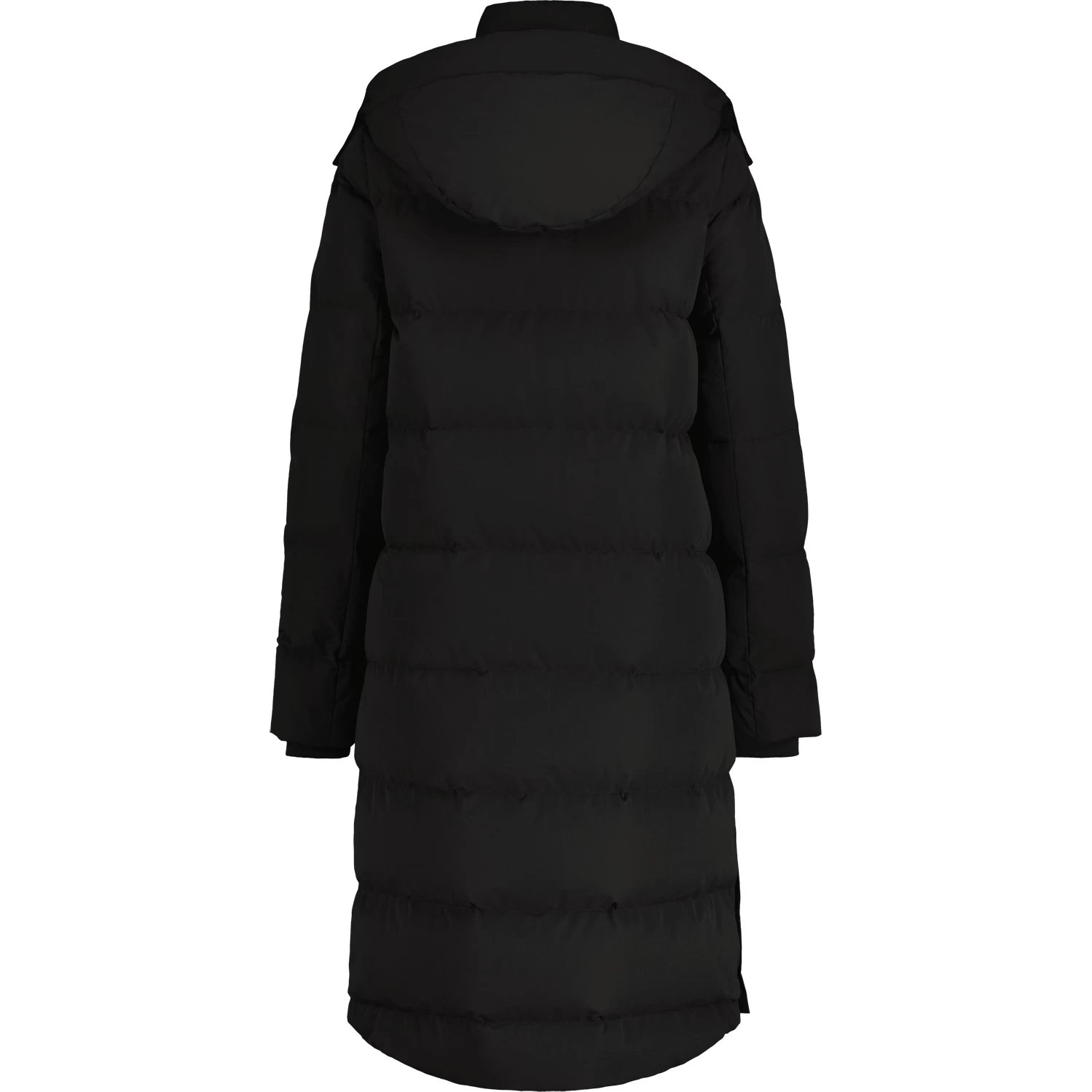 Zeer warme, lang gesneden jas met vulling van gerecycled dons. Het Stormshell buitenmateriaal is winddicht en heeft een PFC-vrije waterafstotende afwerking. Afneembare capuchon, tweewegritssluiting, zijsplitten met drukknopen voor meer bewegingsvrijheid, twee zijzakken met ritssluiting, twee zakken boven met drukknoopflappen.