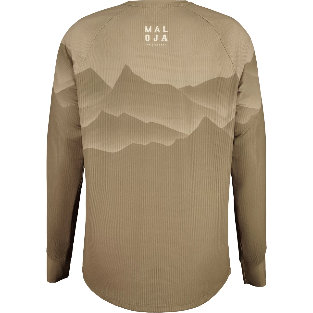 De casual snit en de geoptimaliseerde pasvorm bieden veel bewegingsvrijheid, het jerseymateriaal is bijzonder luchtdoorlatend en droogt snel. Bergsilhouet all-over print, Maloja letters op de onderarmen, Mountain People patch op de borst.