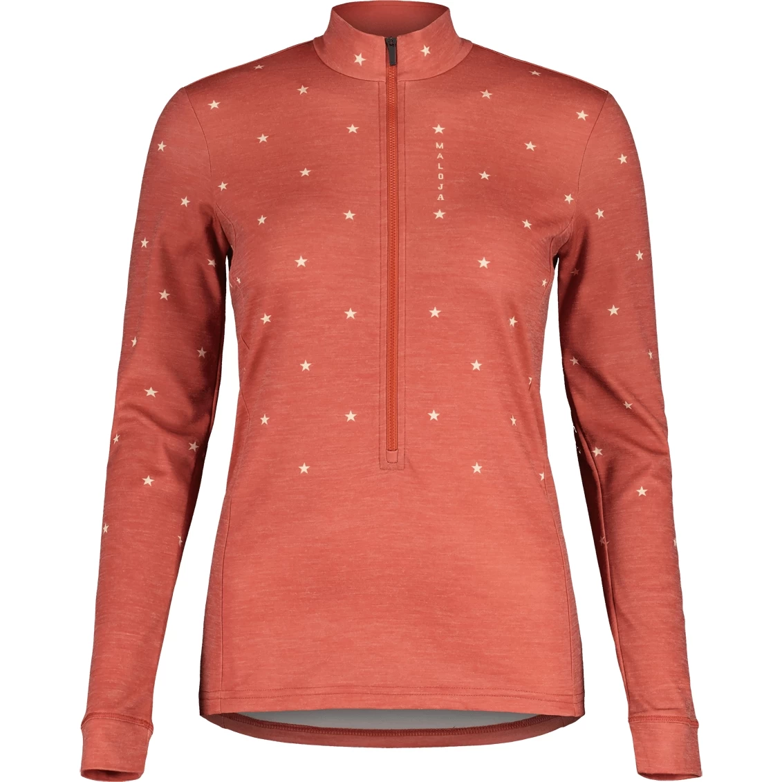 Het elastische, sneldrogende Thermopile Merino-materiaal is de ideale mid-layer voor alle buitenavonturen. Grafische Maloja-letters naast de rits aan de voorkant en Happy Mountain geweven label.