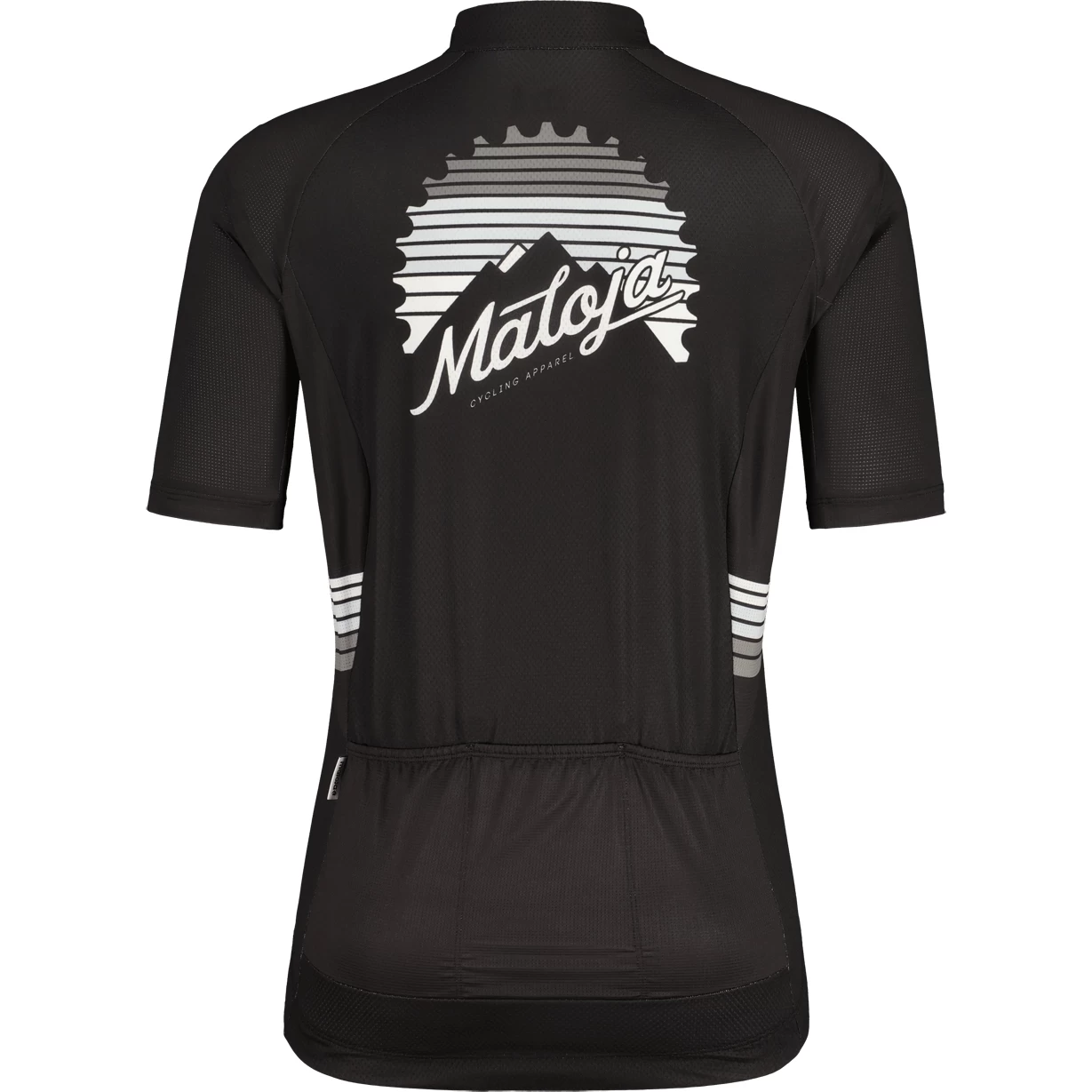 De DentroM. Trui 1/2 heeft een slanke pasvorm, een doorlopende ritssluiting, drie achterzakken en sneldrogend materiaal, en biedt alle kenmerken van een klassieke trui. De gestreepte inzet aan de zijkanten en het grote Maloja-logo met kettingrand aan de achterkant geven het een onafhankelijke uitstraling.