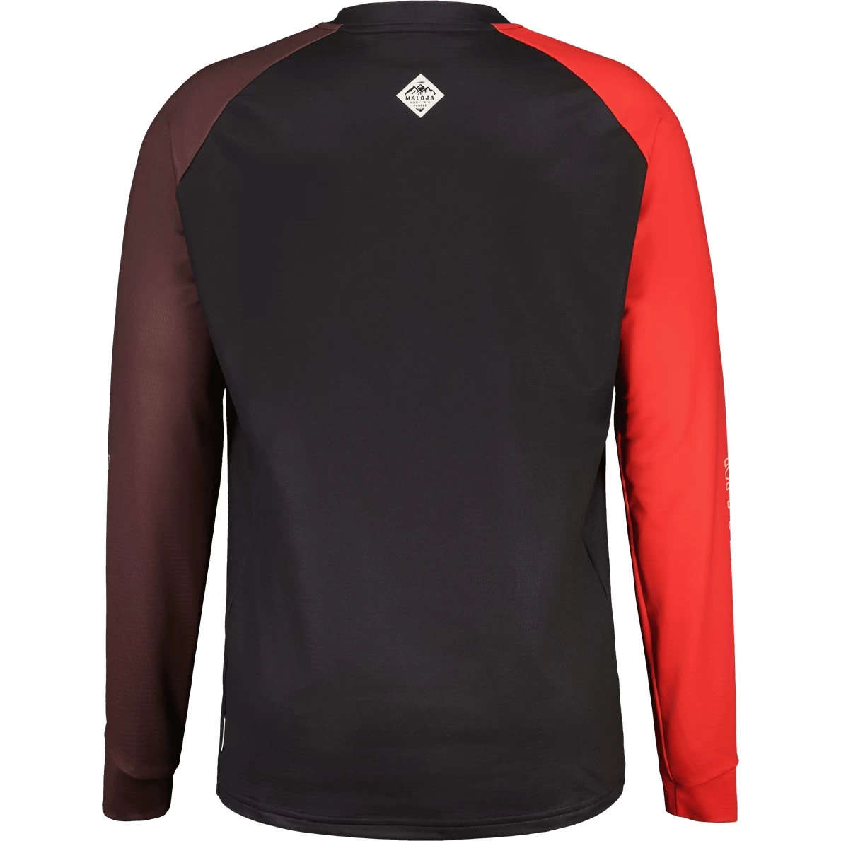 Het elastische, sneldrogende en verwarmende thermopile materiaal van dit comfortabel gesneden enduro shirt is ideaal voor koelere dagen of als mid-layer. Maloja letters op de borst en mouwen, Maloja patch in de nek.