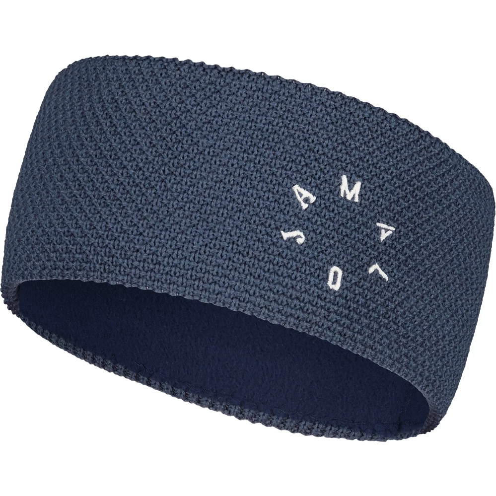 Grof gebreide hoofdband van wolmix, warme fleece voering aan de binnenkant, met geborduurde ronde Maloja letters.