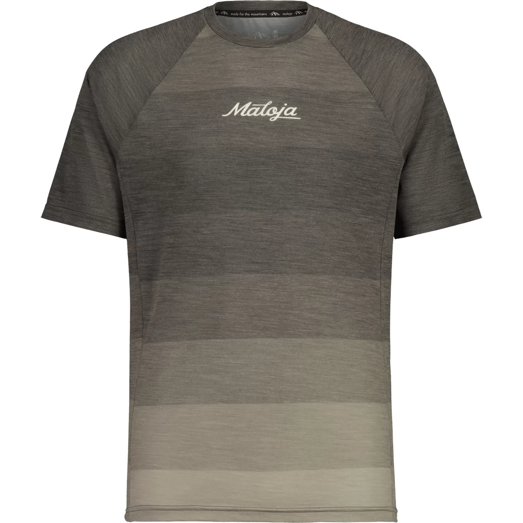 Strak multisport baselayer shirt voor heren van merinowol, sneldrogend en met goede thermische isolatie, met all-over kleurverloop of bergsilhouet. Maloja-opschrift op de borst.