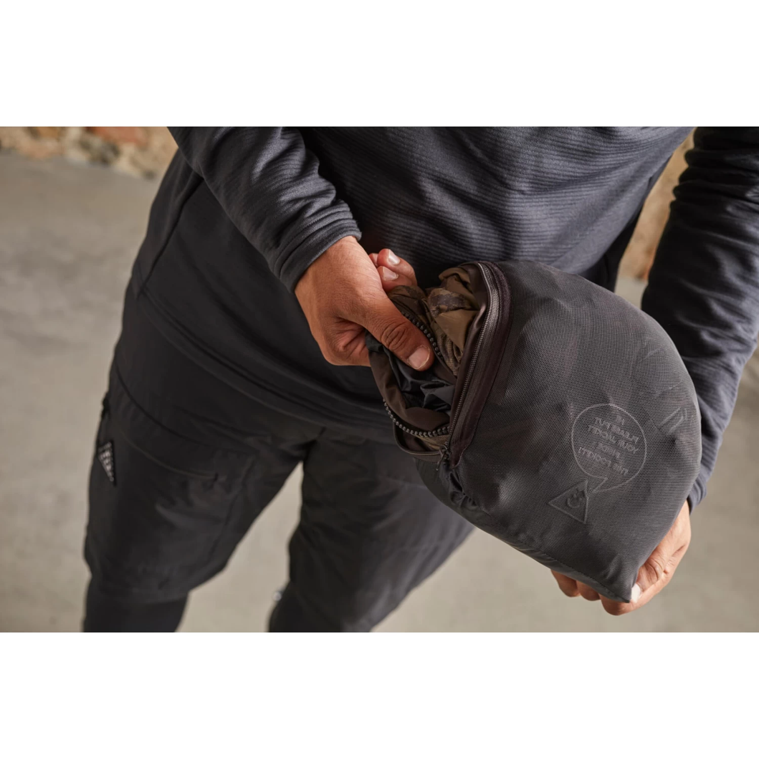 Met zijn Primaloft Gold-vulling biedt het kleine, opvouwbare, geïsoleerde jack behaaglijke warmte, terwijl het Stormshell-materiaal aan de bovenkant goede bescherming biedt tegen het weer. Twee zijzakken met rits boven het rugzakharnas, reflecterende manchetten, tailleband en capuchon, Mountain People patch op de borst.