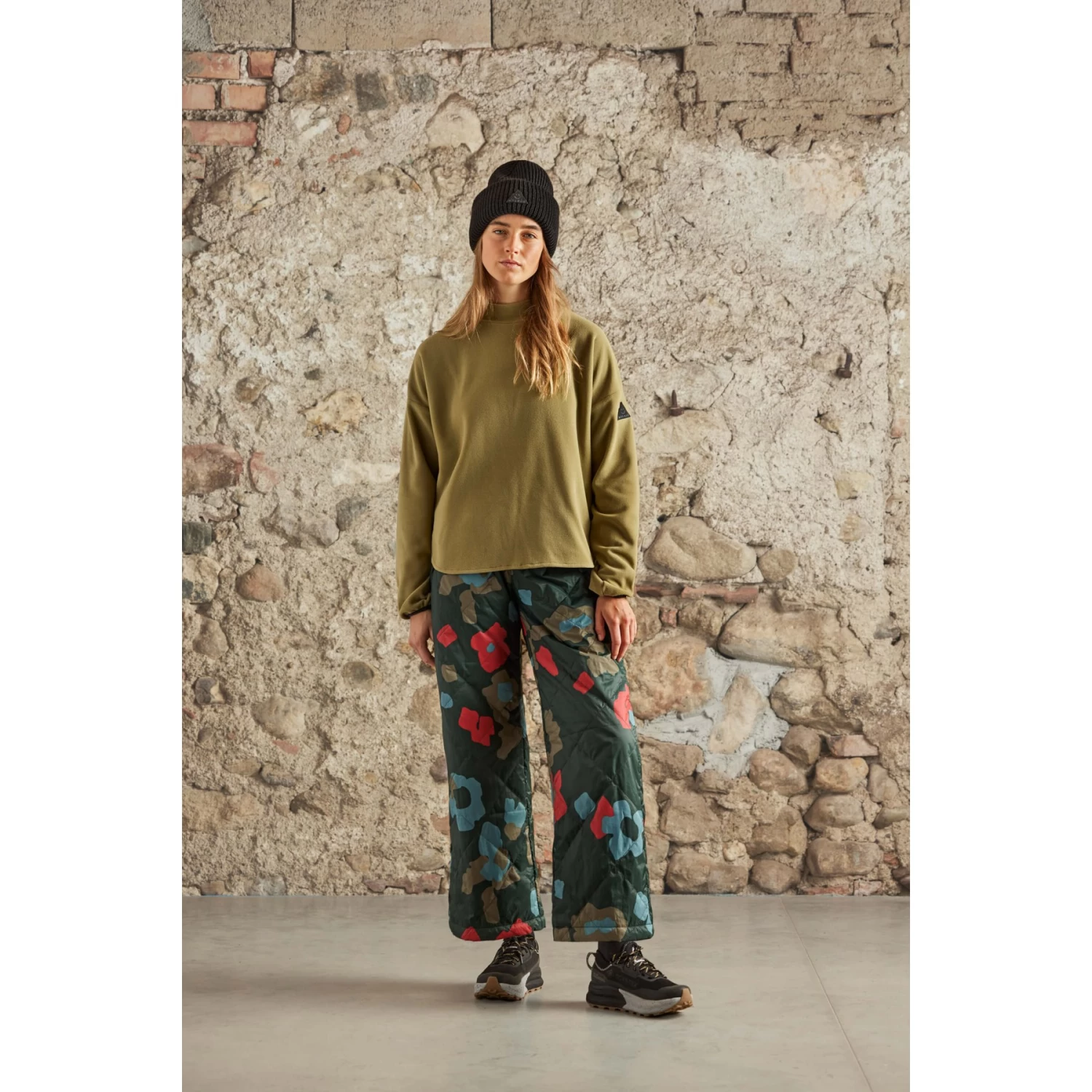 Oversized fleece trui met opstaande kraag, afgezakte schouders en Happy Mountain patch op de schouders.