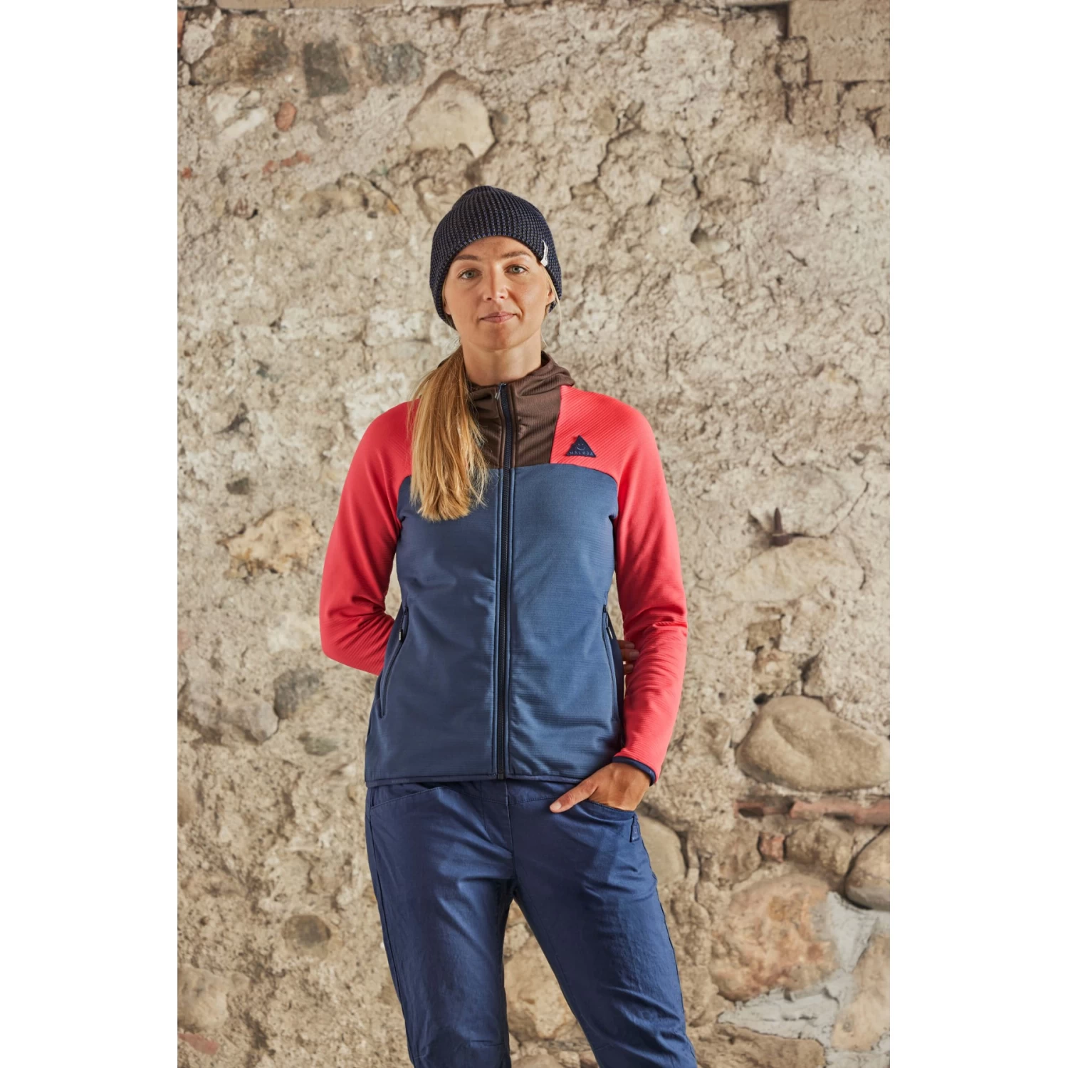 Warme midlayer van sneldrogend, ademend materiaal, twee ritszakken opzij. Happy Mountain patch op de borst, Mountain People borduursel op de achterste bovenarm. Met stormcapuchon.